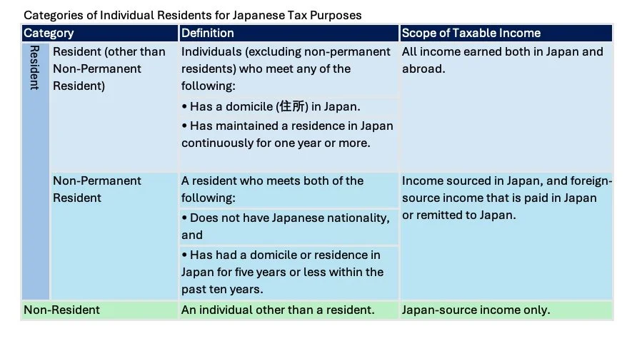 1. Scope of Taxable Income for Foreign Residents in Japan