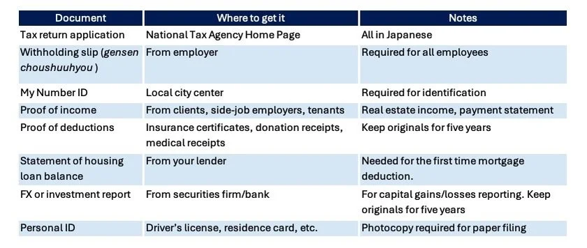 Any income not covered by your company’s year-end adjustment (nenmatsu chosei) must be reported via a personal tax return (kakutei shinkoku). This ensures compliance and unlocks refunds for overlooked deductions.