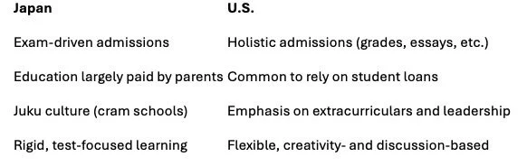Here are some key differences in the education culture and financial expectations between Japan and the U.S.: