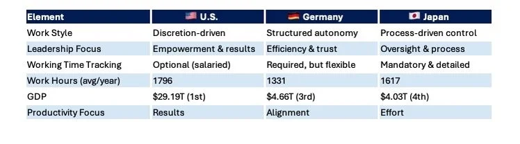 These cultural tendencies aren’t just philosophical — they show up in how work hours and economic output play out.